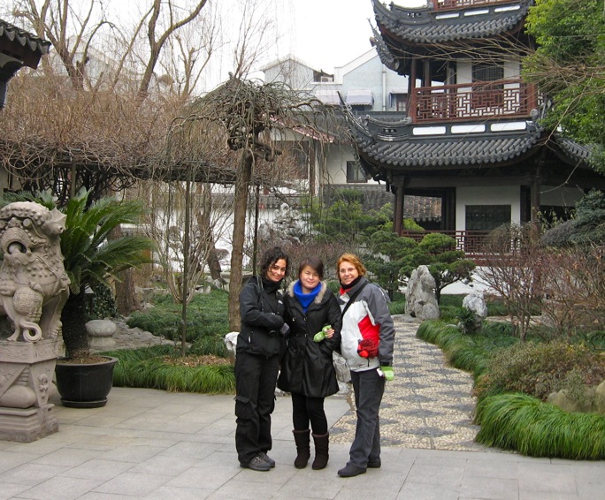 Etrafta aylaklanirken yanimiza gelen orta yasli kisi kendini gonullu olarak tanitti. Bize biraz oranin hikayesini anlatti. Aslinda 20-30 sene once kurgulanip insa edilmis o bolge. Oradaki tek eski bina 140 senelik gecmisiyle Yildiz bilmem ne Han’i ve en ust katinda cok otantik bir cay evi varmis. Birlikte oraya girdik, 4. kattan avluya ve kalabaliga baktik. Buradan yeni bolgedeki meshur gokdelenler de tum ihtisamiyla gozukuyor. Oriental Pearl Tower ve ticaret merkezi binasi dev gibiler. Doyduk artik gokdelene.