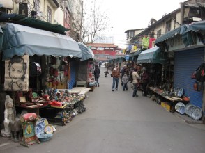 Iste az onceki tozlu buddhalarin tozsuzu raflarda. Giris sagli-sollu sadece hediyelikci. Istisnasiz herseyi 4de 1 fiyatina alabilirsiniz. Belki daha da iyi fiyata, olay tamamen sabrinizla, dik durusunuzla ve pazarlik kabiliyetinizle alakali. Dukkanlar arasinda bir caycinin masasinda cay denerken bulduk kendimizi. Bize cesit cesit cay denettirdi, cay yapmanin sirlarini hem anlatti hem gosterdi. Bir tutamla kac kere kac bardak demlenecegini, suzgec kullanmanin onemini, cayin ilk demini kisa tutup atmayi, sicak suyu sanki dokecegi yeri tutturamiyormus gibi suzgece ve etrafina dokmeyi gibi seyler. Tabi aromatik caylardan iyice keyiflenince, bir anda cay almis bulduk kendimizi :).