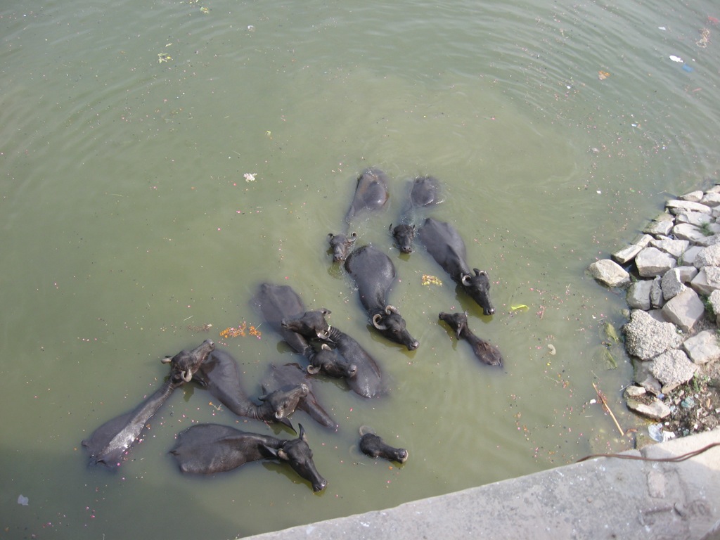Ghat’a inince bir istikamet kestirip gozumuze o yone dogru basladik yurumeye. Butun yol boyunca kendilerini ya da kiyafetlerini Ganj’a vurarak temizleyen insanlari seyrettik. Insanlar kadar ineklerin de kutsanmaya ihtiyaclari var tabi, ulkenin resmi kutsal hayvani olduklarina gore, onlar da kafalarina kadar girmisler nehre, serinleyerekten gevis getiriyorlar.