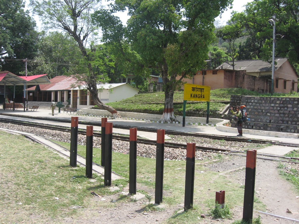 McLeod Ganj’dan sabah 10 gibi ayrilip, Dhramsala’ya giden otobusu yakaladik. Dharamsala otobus duragina gelir gelmez, Kangra’ya giden otobusu bulduk ve otobus hemen hareket etti. Dharamsala Kangra arasi 1 saat kadar surdu. Sansli gunumuzdeydik sanirim, arada hic beklemeden tikir tikir vasita degistirmeyi basarabildik. Kangra’ya ulastigimizda yeni bir otobuse binmemiz gerekecegini saniyorduk tren istasyonuna gitmek icin ama oraya geldigimiz otobus o tarafa dogru devam ediyor oldugu icin tren istasyonuna giden yol ayrimina kadar goturdu v