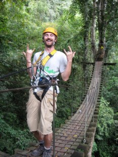 “Flight of the Gibbon”, yani gibbon’un ucusuuuuuuu (gibbon: sebek, Asya maymunu). Yagmur ormaninda bir vadiye kurulmus bol heyecanli ve manzarali bir doga aktivitesi oldugunu ogrendigimiz bu seye o kadar heves ettik ki simdiye kadar hayatimizda para verdigimiz en pahali aksiyon olmasina ragmen kendimizi engelleyemedik ve ertesi sabah 6’da cikacak gruba adimizi yazdirdik. Bir yerden kisar, acigi kapariz artik, naapalim.