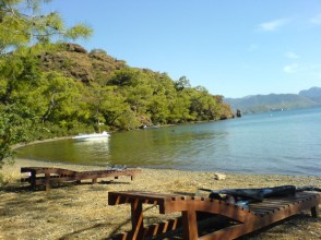 Bakkal yok! Bar yok! Hazir yemek ya da restoran yok! Sezlong yok (aslinda bir kac tane eski tip tahta sezlong var), kum yok (kumsal tastan), muzik ve ruslar yok!