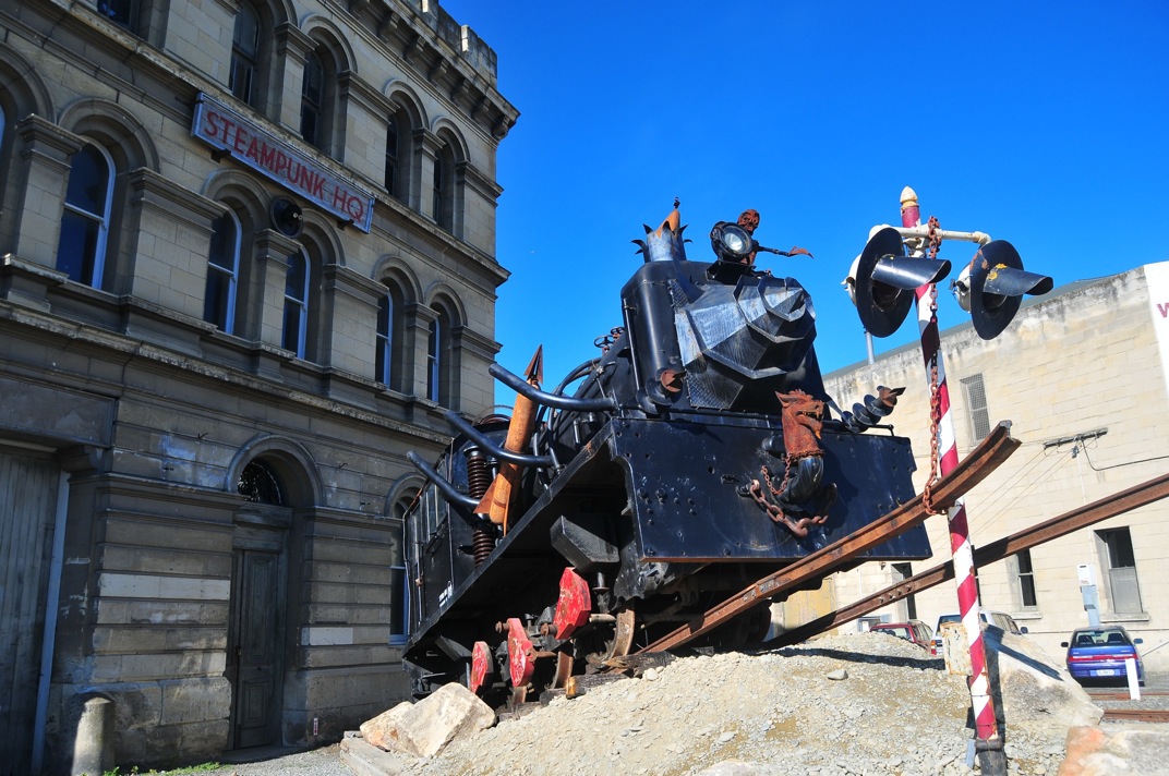 Merkezde eski bir yapinin etrafinda sergilenen is makinalariyla yapilmis sanatsal calismalari gorduk. Steam Punk diye adlandirilan bu sanatin dunya uzerinde bir suru takipcisi varmis. Bu bina headquarter (bu isin merkez binasi) diye adlandiriliyormus. Ilginc tasarimlardi gordugumuz seyler, ilgimizi cekti bir hayli.