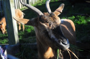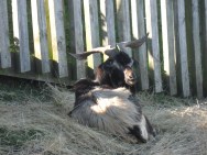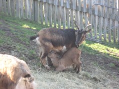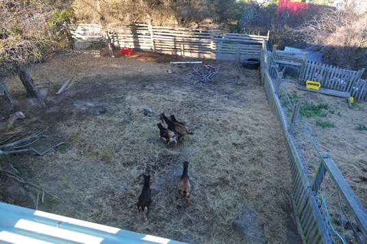 bahceye ayni anda bakabiliyoruz tepelerinden. Birinde 3 yavru teke, digerinde 5 yavru keci var. Birbirlerine daha bu ufak yasta hakimiyet kurmaya calistiklari icin yayarak atiyoruz nutslarini ve samanlarini. Birbirlerini kovalaya kovalaya yemeklerini yiyorlar.