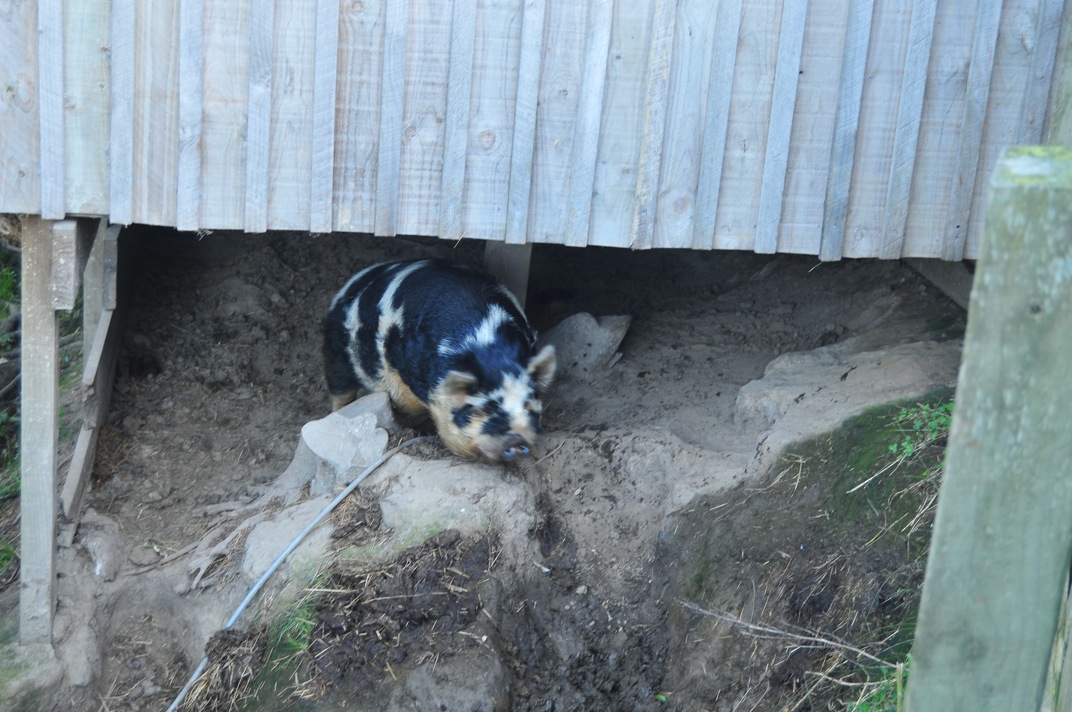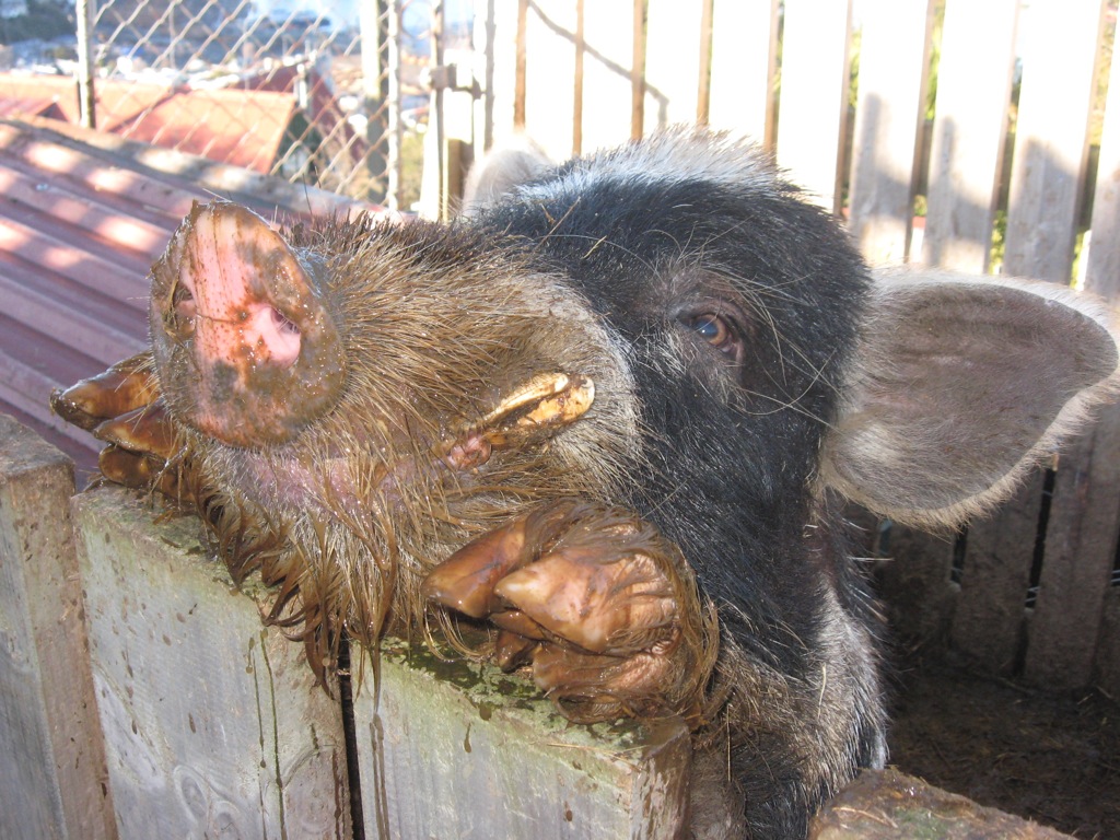 Onde 2 ayri ahirda 2 ayri cilgin vahsi domuz varken arkada biraz daha buyuk bir ahirda bu buyuk domuzun teyzesiyle annesi bir arada duruyor. Niyeyse bir turlu gecinemiyor, ahirlarina sigisamiyorlar. Ozellikle yemek saati geldiginde daha fazla yemek ugruna biri digerini itip kakiyor.