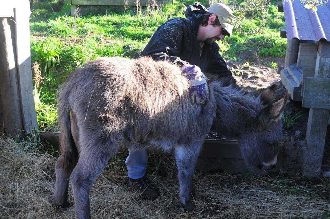 Zirvedeki 5 pony ata ve 4 essege birsey vermiyoruz. Onlar tepenin otlariyla besleniyor zaten. Belli araliklarla sularina cikip bakmak yeterli, Dave arada bakiyor, ziyareti sirasindaki sevgi gosterilerini de kabul ediyor tabi ki.