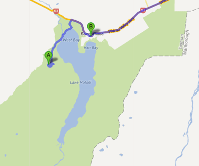 Mt Robert arac otoparkindan St Arnaud kasabasina giden yol. St Arnaud’da Nelson Lakes Milli Parki’nin DOC ofisi ve kamp alanlari var.