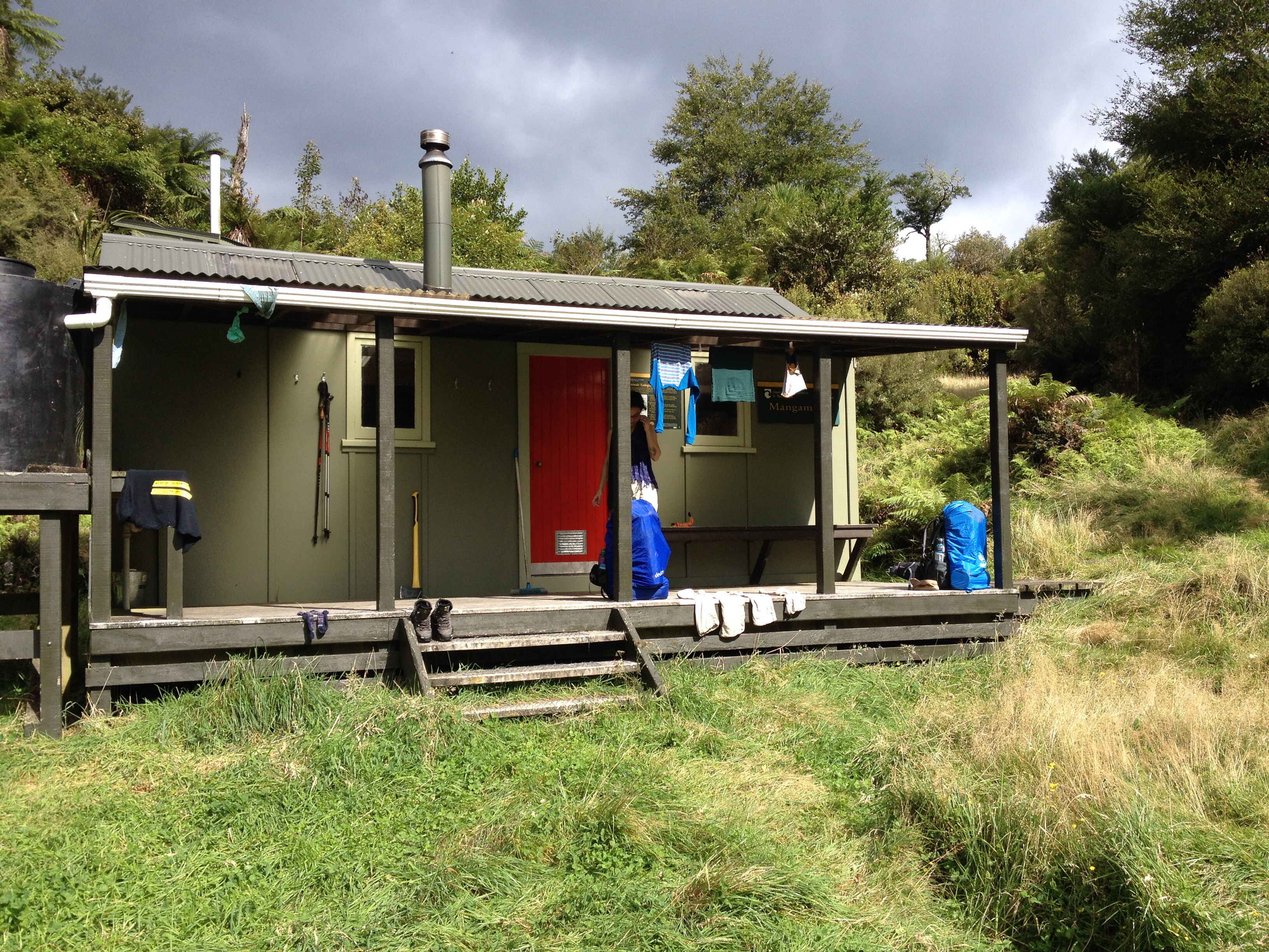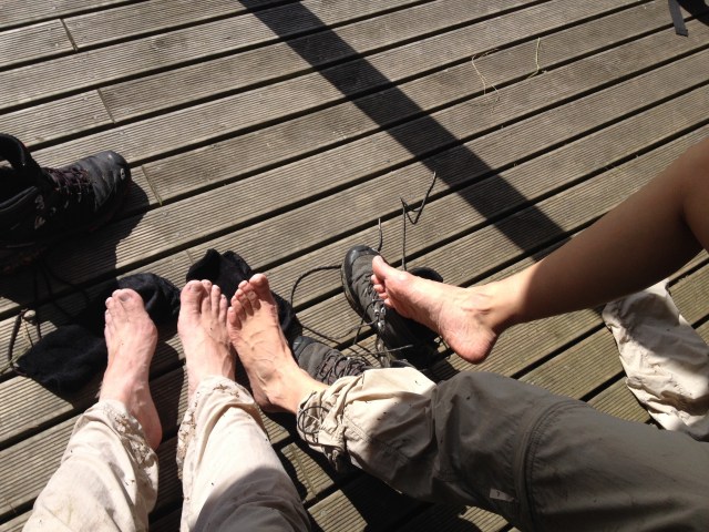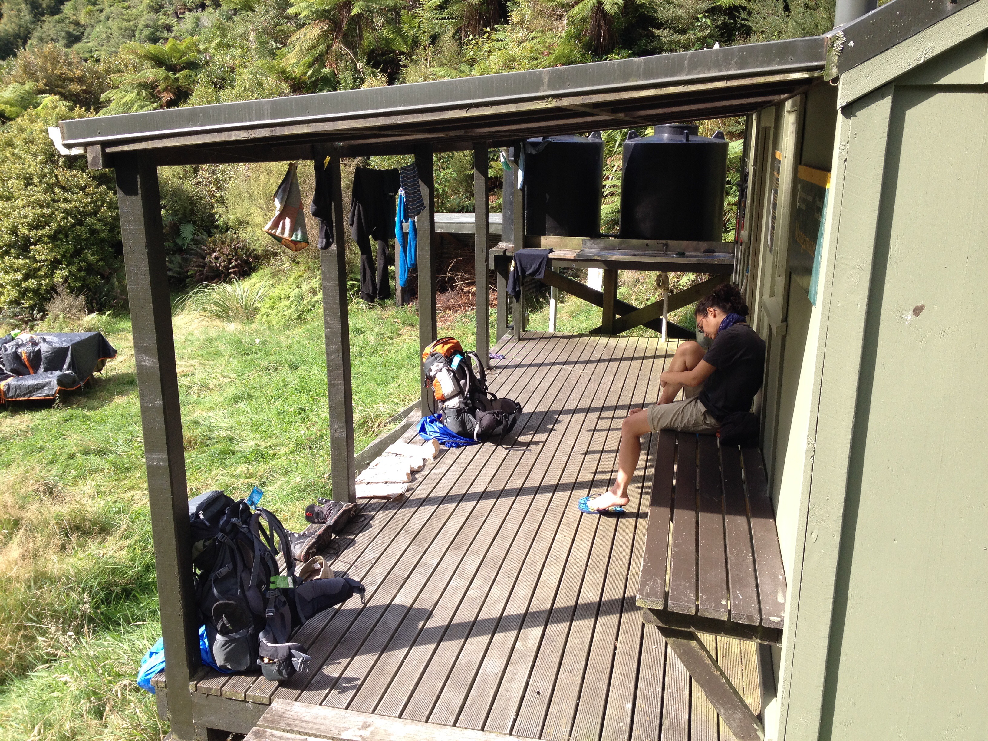 Buyulu ormanlardan ve irili ufakli derelerden sonra bizi gayet dik yarim saatlik bir tirmanis bekliyormus meger. Bes saatlik yurusuyusumuzun son tikinda terleyerekten ciktik burayi. Ama butun islakliga ve efora degdi dogrusu. Minicik kulube vadiye bakan yuksek bir noktada gelisimizi bekliyormus sessizce. Buyulendik. Varir varmaz bu buyuyu botlarimizi cikarmamizla ve etrafa darmadagin yayilmamizla bozduk.
