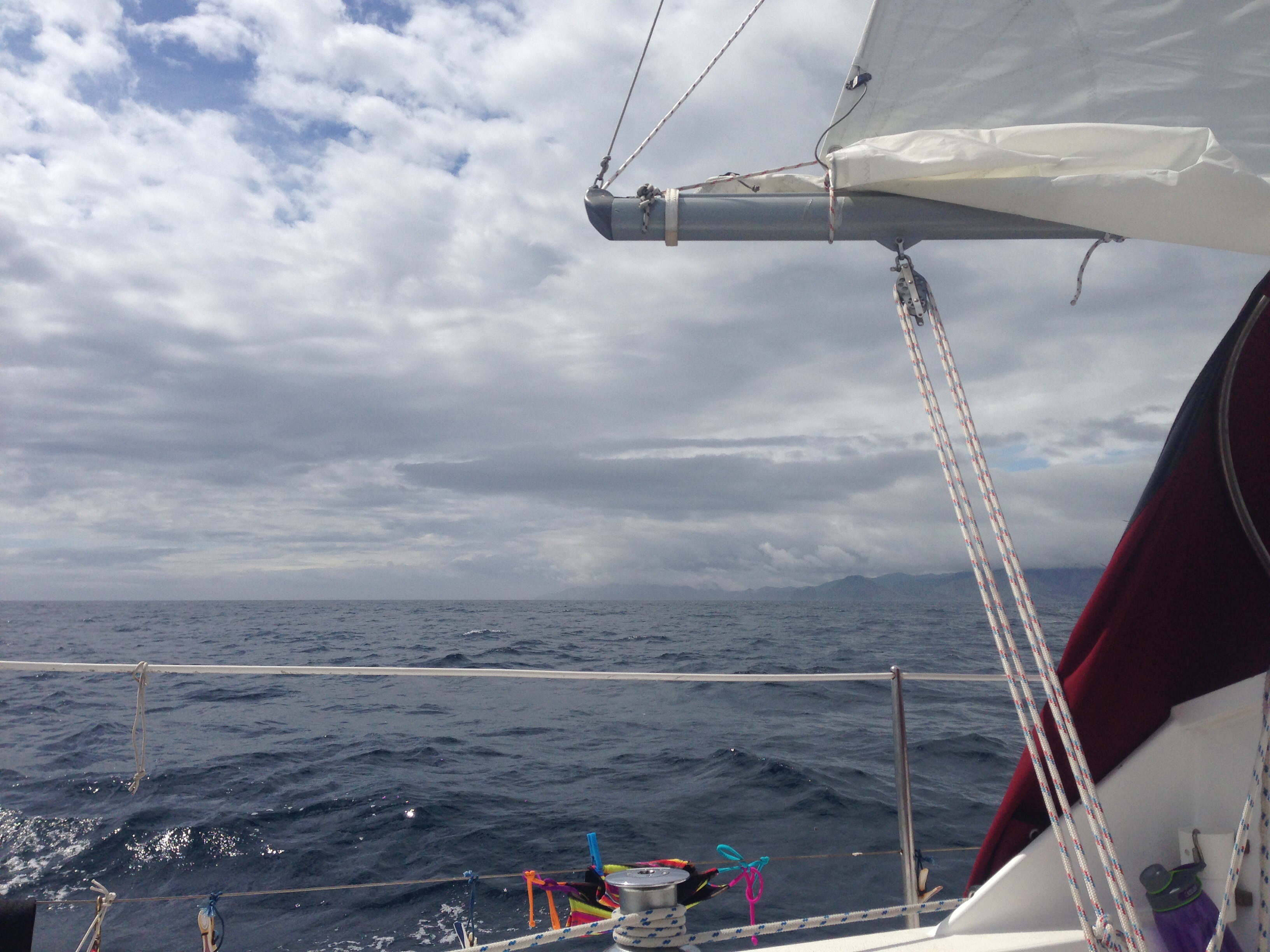 Biz yelken cekerken arkamizdan Hans ve esi bir yelkenlide, yilbasi gecesinde tanistigimiz bir baska cift diger yelkenlide yanimizdan gectiler, el sallayip selamlastik. Onlar motorla devam ettiler. Bizse motoru susturup, yelkenin rahatlatici sukunetine kavusarak devam etmeyi sectik. Kictan takma motorun bir zorlugu da bu olsa gerek, cok gurultu oluyor.